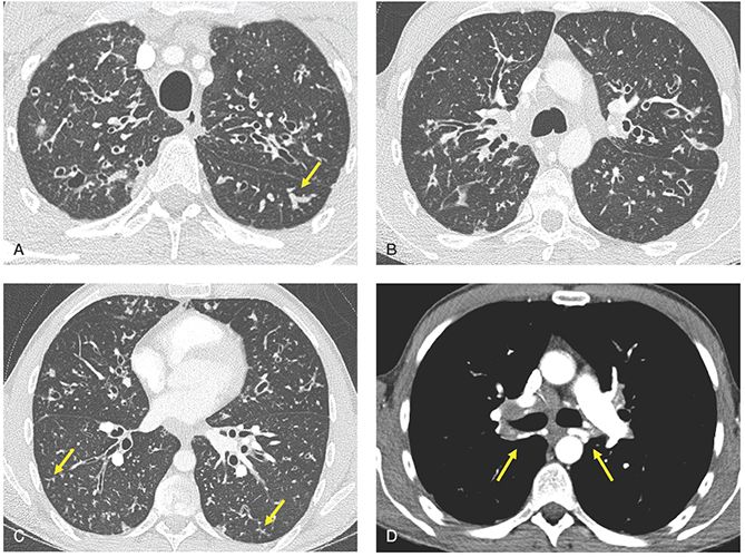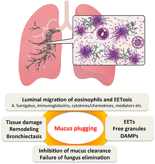 In the smaller airways, mucus plugs can lead to collapsed air sacs (alveoli), impacting oxygen levels.
